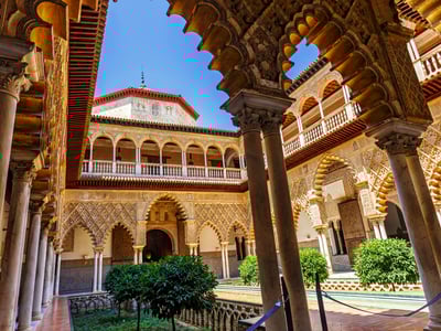 You’ll begin at Seville Cathedral, the largest Gothic church in the world. Your guide reveals its treasures — the gilded altarpiece, orange tree courtyard, and Columbus' tomb — while sharing the saga behind this monumental cathedral.